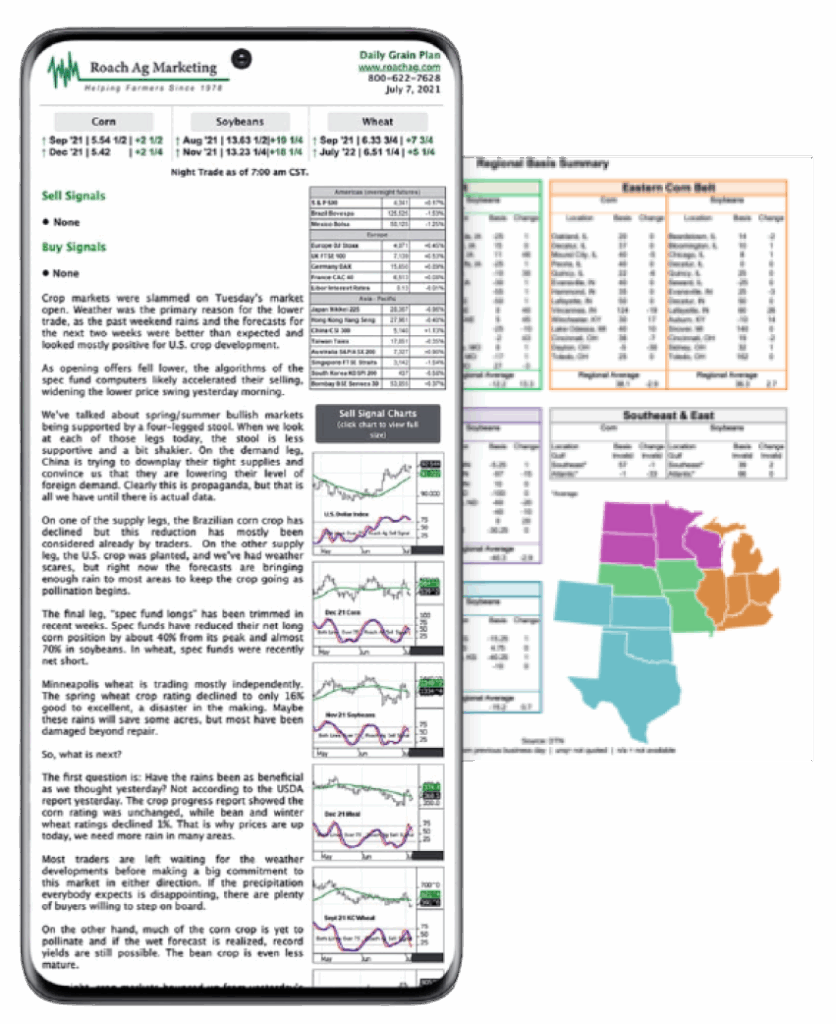 In 90 seconds or less with Roach Insights you can make the decision to sell your grain at price peaks – and reduce the stress of marketing – with our award-winning daily e-newsletter delivered to your inbox every day the market is open.